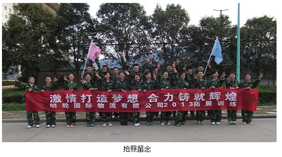 ----明轮2013年拓展训练 2013年10月19日,我司在连云港阅海楼海上训练基地组织了为期一天的拓展训练,训练的项目有:破冰训练、团队组建、信任背摔、电网、高空断桥、急速150等。 通过各种充满新异和趣味性的员工活动,让我们的团队在强大的生活与工作压力下,得到一种完全的放松,并在团队中建立起一种轻松愉快的工作氛围;通过各种挑战自我的熔炼团队项目安排,让我们认识自我,认识团队,在团队中建立一种战友般的信任;通过精心设计的游戏和难题不断让我们的团队增强成功的信心,增强成功的意志,突破思维的空间。 经过一天的训练,我们不仅身体得到的有效的锻炼,精神上更加体会到了团队合作的重要性:只有凝聚力量,才能成就目标;也进一步的提升自我:全方位充分肯定自我,提升自信心,突破重围,到达胜利彼岸;学会了尊重与理解:尊重同事尊重战友、相互感恩相互理解。