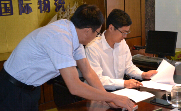 连云港明轮国际物流有限公司的总经理李善热情迎接合作伙伴邮。他们在总经理办公室共同商讨战略合作的具体事宜,并最终达成了一致意见。