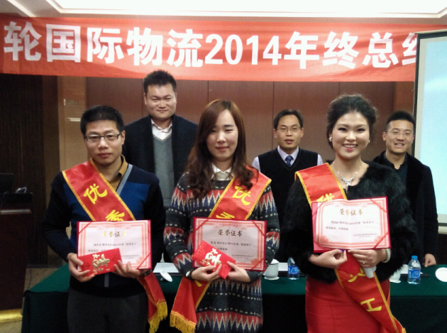 大会分为三个流程,第一项:总经理李善、分公司经理尹磊、连云港进口部经理徐运兵分别发言;第二项:优秀员工表彰;第三项:优秀员工代表发言。