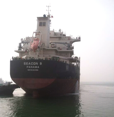 2015年2月23日,大年初五,连云港明轮国际物流代理的“海洲9”红土镍矿船,全船71470吨,成功靠泊赣榆新海湾码头公司,由于此船的到来,赣榆港区十万吨级航道首次发挥作用,赣榆港区服务临港产业、助推临港经济的能力再次得到提升。