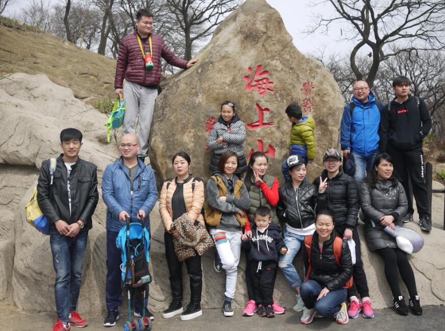 此次登山的线路是从宿城景区大门出发,经万寿谷、云台石林、悟道庵至海上云台山,在山顶聚餐游玩拍照留念后,再下山至连云港老街游览。全程需行走约3小时,手环记步约2万步,非常考验参与者的体力和意志力。 当天,早晨的气温微冷,但每个参与者的心里都是火热的,甚至有员工提前一小时就到了集合地点等候。登山途中,虽然连绵不断的石阶不停在消耗着大家的体力,但伴随着孩子的欢声笑语,一路的优美风景,大家汗流浃背却没有一个人掉队,而是不停的互相帮助,互相鼓励,携手登上了顶峰。山顶合影中,每个人都流露着胜利的微笑,觉得不虚此行。特别是4个不满十岁的孩子表现的特别棒,跟随队伍走完了全程,没有哭闹和让大人抱。下山后原本是计划聚餐,但大家觉得不够健康,运动完不宜多吃,因此一致决定改为更有意义的看电影,选择了刚上映的大片《金刚:骷髅岛》。 一天的时间非常短暂,但大家过的十分的充实和有意义。此次活动,增强了员工和员工家庭之间的了解和情感,让员工在节假日能放弃消极休息转变为积极地亲近大自然,提高了大家在春天锻炼身体增强体质的动力。一年之计在于春,我们必将用登山的团结去展现强大的凝聚力,用登山的热情面对整年的工作,用登山的毅力去克服一切的困难!