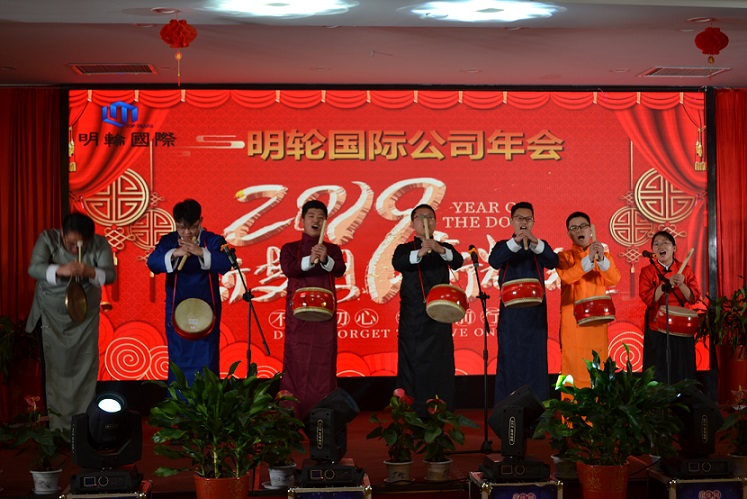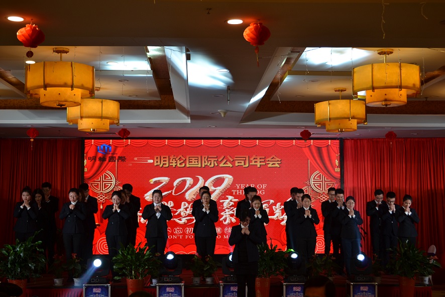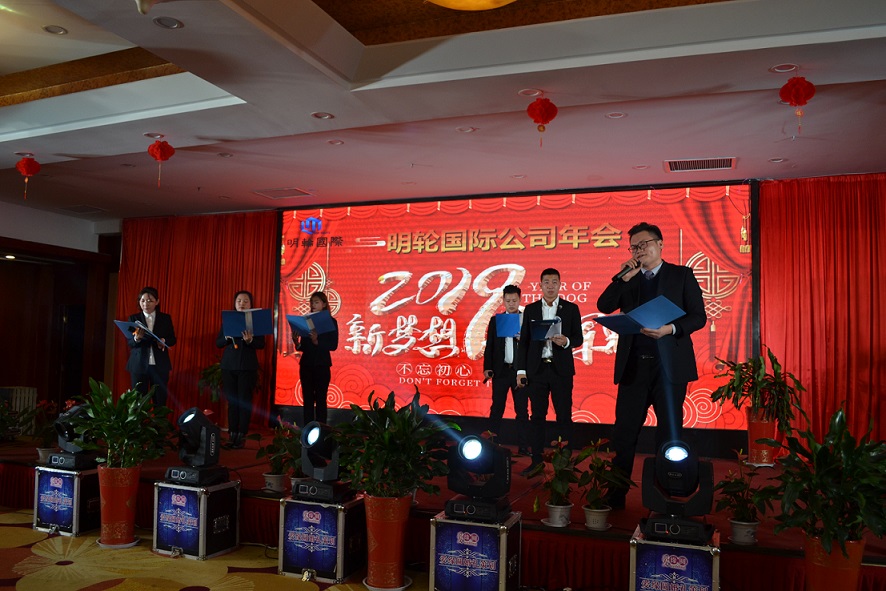 2018年1月19日我司年会在明珠开君酒店如期举行。明轮国际的全体员工欢聚一堂,在欢声笑语中酣畅落下帷幕。 年终总结会上,公司董事长李善先生发表了重要讲话,深度总结了明轮国际成立20年来的发展历程和2018年的总成果,并且展望了2019年未来的发展重点和方向。总经理戴红兴先生进行工作部署,规划各部门工作重点。各部长认真总结2018,共同力争2019优秀团队。 会后的年会活动更是精彩纷呈,明轮员工自创自演了丰富多彩的文艺节目,激动人心的抽奖环节让整场晚会高潮迭起。出口部全体成员的风采展示,以气势汹汹的黄河大合唱拉开了晚会的序幕。分公司负责人张冠伟带来一曲《38度6》,高水平的演唱令人惊叹。袁红部长携手组员带来眼前一亮的相声三句半,赵越部长携手组员带来的小品更是让人哄堂大笑。紧接着的男声串烧和女生独唱,四位新员工的精彩演出让人耳目一新。由徐运兵部长组织的诗歌朗诵《歌颂明轮20周年》,其声情并茂的朗诵和歌唱,让众多员工陷入往年的回忆当中。孙苗苗部长携手组员带来舞蹈《花呗不用还》,点燃了现场的气氛,李董事长也不禁摆动起舞姿,与员工一同融入音乐。分公司的员工带来的小合唱《生僻字》后,由进口部、财务部及综合管理部全员带来的压轴大合唱《明天会更好》,结束了整场晚会,大家共同祝愿明轮的未来会更加美好。