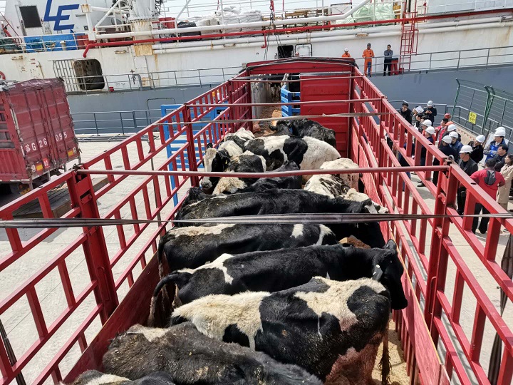2019年4月11日,“短角牛快车”轮承载3388头澳大利亚进口活牛顺利靠泊江苏盐城大丰港滚装码头第一作业区。 为确保活牛顺利接卸、安全送达隔离场,我司提前做好码头准备、报关放行、车辆安排等各项工作。凭借丰富的代理经验,提前成立接卸小组,提出“召之即来、来之能战、战之必胜”的工作口号。此次小组成员经过16小时(含中间等潮水停止作业2小时)的配合奋战,共发出129车次,顺利完成本次澳牛的接卸工作。 盐城海关沙关长亲自莅临指导工作,连云港关、连云港港口领导一同赴现场检查指导工作,此次的顺利接卸,海关、港口各部门领导对我司的专业团队和成熟的代理经验给予了高度的评价和认可。 明轮国际物流必将不骄不躁,稳步前行,在面对机遇与挑战的同时,用我们专业、敬业服务好每个客户,打造属于自己的品牌。