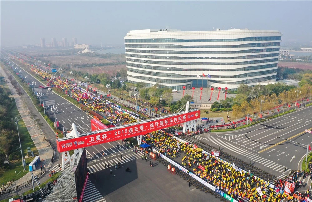 2019年10月20日上午8:30,“卫星杯”2019连云港徐圩国际马拉松赛鸣枪开跑。
